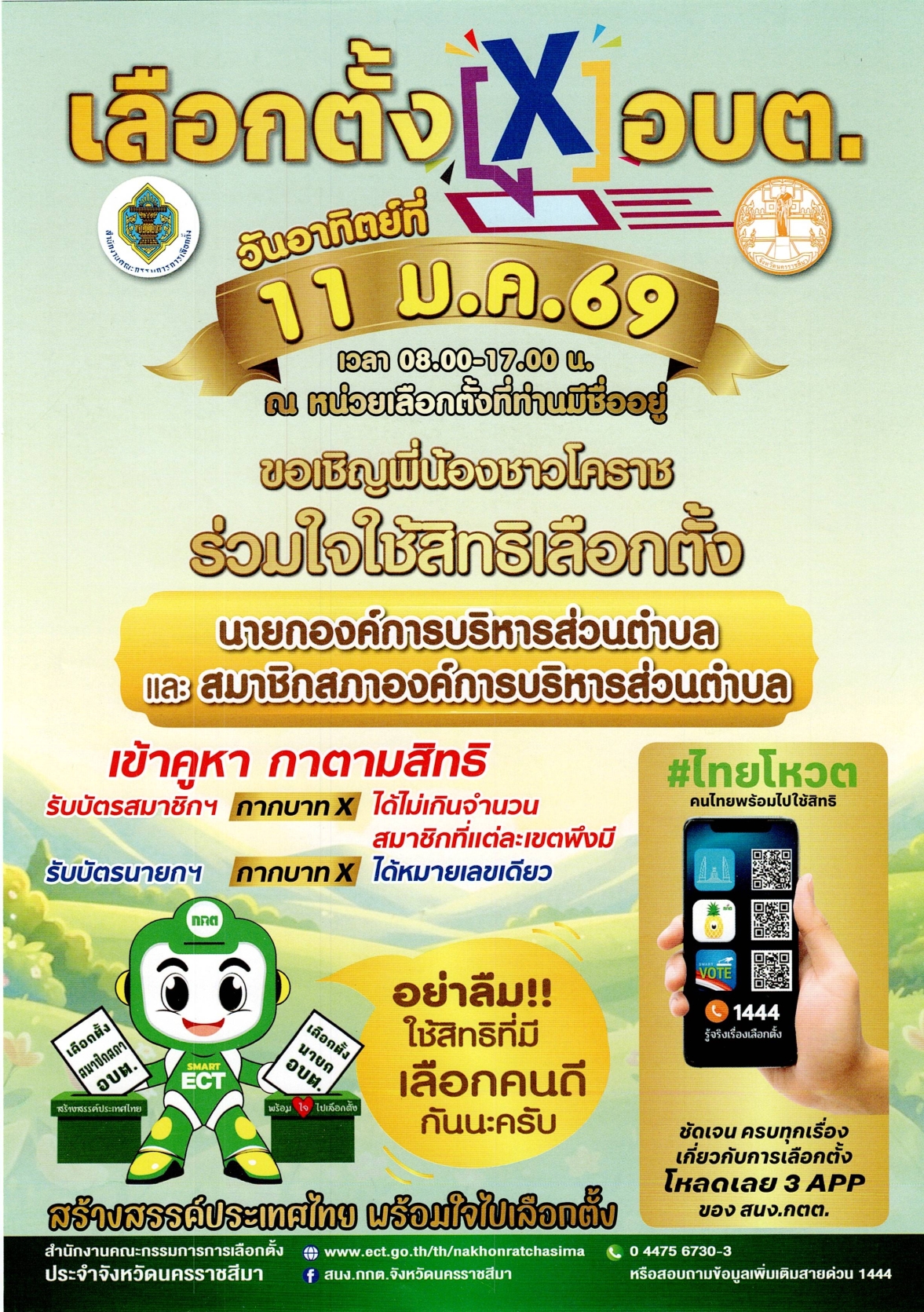 ขอเชิญชวนร่วมใจใช้สิทธิ์เลือกตั้ง นายกองค์การบริหารส่วนตำบล และสมาชิกสภาองค์การบริหารส่วนตำบล |