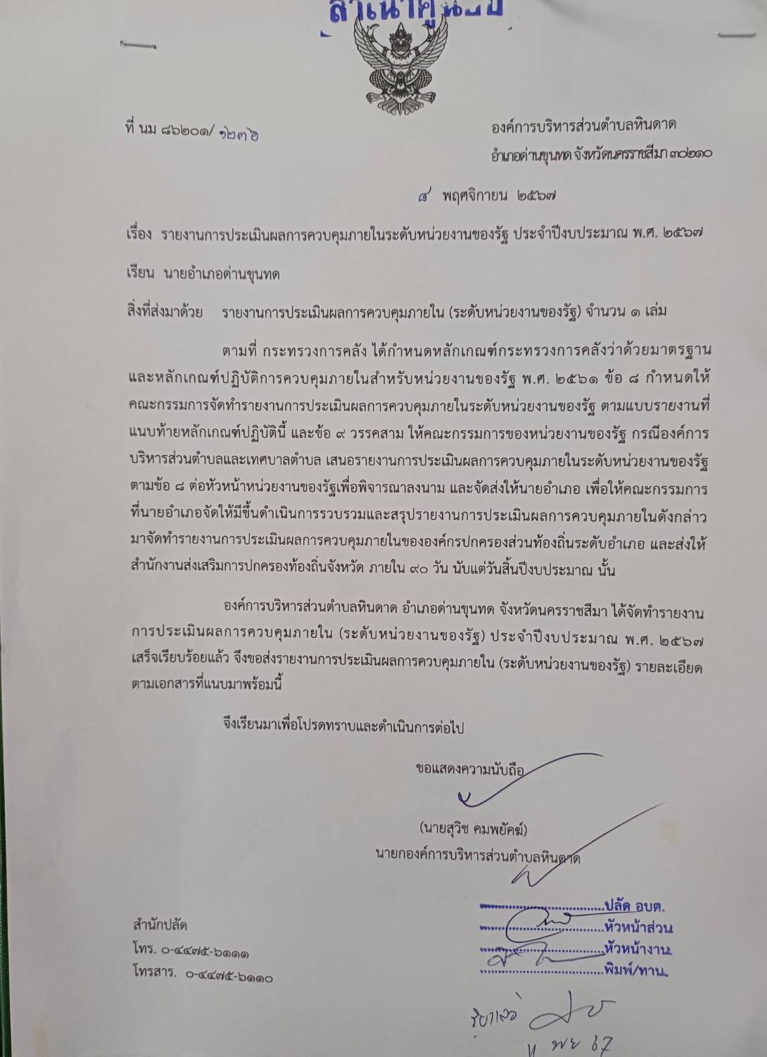 รายงานการประเมินผลการควบคุมภายในระดับหน่วยงานของรัฐ ประจำปีงบประมาณ พ.ศ. ๒๕๖๗ |